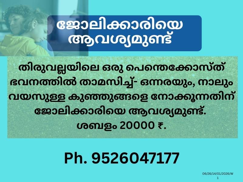 തിരുവല്ല: ഐപിസി പ്രയർ സെൻറർ സഭാംഗമായ കിഴക്കൻ മുത്തൂർ പള്ളിവിളയിൽ രാജു പൗലോസിന്റെ ഭാര്യ അച്ചാമ്മ ചാക്കോ (മേഴ്സി 57) കർതൃ സന്നിധിയിൽ