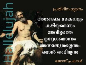 അങ്ങേക്കു സകലവും കഴിയുമെന്നും അവിടുത്തെ ഉദ്ദേശമൊന്നും അസാദ്ധ്യമല്ലെന്നും ഞാന് അറിയുന്നു -ഇയ്യോബ് 42:2