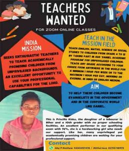 കഴിഞ്ഞ ഒരു വർഷമായി കുറ്റൂർ കേന്ദ്രമാക്കി അറ് ചെറുപ്പക്കാർ സംയുക്തമായി നടത്തി വരുന്ന പരസ്യ യോഗ- ടീം വർക്കിന് (evangelism in rural area) ഒരു വാഹനം ആവശ്യമുണ്ട്. സുവിശേഷീകരണ പ്രവർത്തനങ്ങളിൽ ഊർജസ്വലതയോടെ പ്രവർത്തിക്കുന്ന ഈ ടീമിൻ്റെ ഉപയോഗത്തിനായി വാഹനമായോ, സാമ്പത്തിക സഹായമായോ നൽകുവാൻ പ്രേരണ ലഭിക്കുന്നവർ സഹായിക്കുക