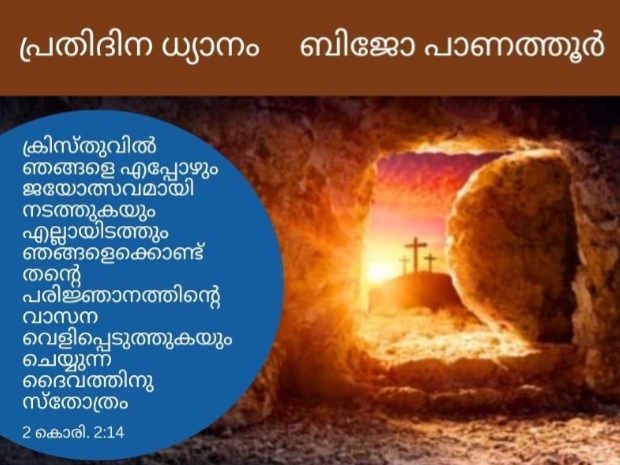 “ക്രിസ്തുവിൽ ഞങ്ങളെ എപ്പോഴും ജയോത്സവമായി നടത്തുകയും എല്ലായിടത്തും ഞങ്ങളെക്കൊണ്ട് തൻ്റെ പരിജ്ഞാനത്തിന്റെ വാസന വെളിപ്പെടുത്തുകയും ചെയ്യുന്ന ദൈവത്തിനു സ്തോത്രം ” (2 കൊരി. 2:14).