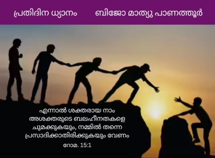 “എന്നാൽ ശക്തരായ നാം അശക്തരുടെ ബലഹീനതകളെ ചുമക്കുകയും നമ്മിൽ തന്നെ പ്രസാദിക്കാതിരിക്കുകയും വേണം” (റോമർ15:1)