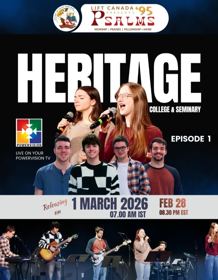 തിരുവല്ല:LIFT കാനഡ ഒരുക്കുന്ന psalms 95 എന്ന ആത്മീയ സംഗീത സംഗമം വിവിധ എപ്പിസോഡുകളായി പവർ വിഷൻ ടിവി സംപ്രേഷണം ചെയ്യുന്നു. ആദ്യത്തെ എപ്പിസോഡ് 2026 മാർച്ച് ഒന്ന് ഞായറാഴ്ച ഇന്ത്യൻ സമയം രാവിലെ 7 മണിക്ക് സംപ്രേഷണം ചെയ്യുന്നു ( ഫെബ്രുവരി 28 ശനിയാഴ്ച വൈകിട്ട് 8.30 PM EST).