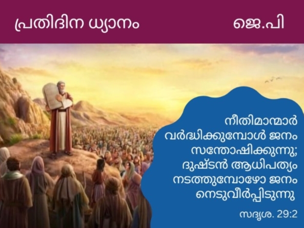 “നീതിമാന്മാർ വർദ്ധിക്കുമ്പോൾ ജനം സന്തോഷിക്കുന്നു; ദുഷ്ടൻ ആധിപത്യം നടത്തുമ്പോഴോ ജനം നെടുവീർപ്പിടുന്നു ”