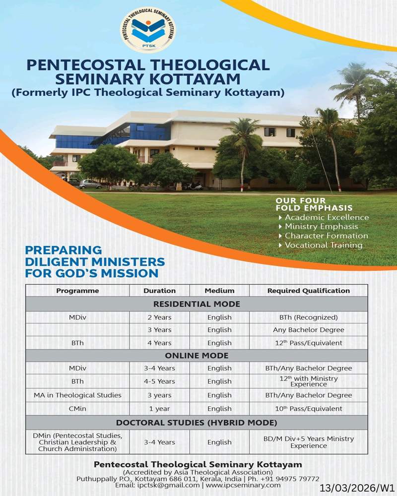 Christian Pentecostal family invite proposal for their son (33, 165cm/65kg), a Multimedia Engineering graduate from Trivandrum. Formerly a multimedia professional, he has been a baptized Full-time Minister since 2017, leading House of Nations ministry and pastoring churches in Madhya Pradesh with global travel experience. Seeking a professionally employed, God-fearing partner with a heart for missions, willing to serve together in Northern India or settle abroad as led by the Lord. Ph. +91 9656252684, +91 8089240191