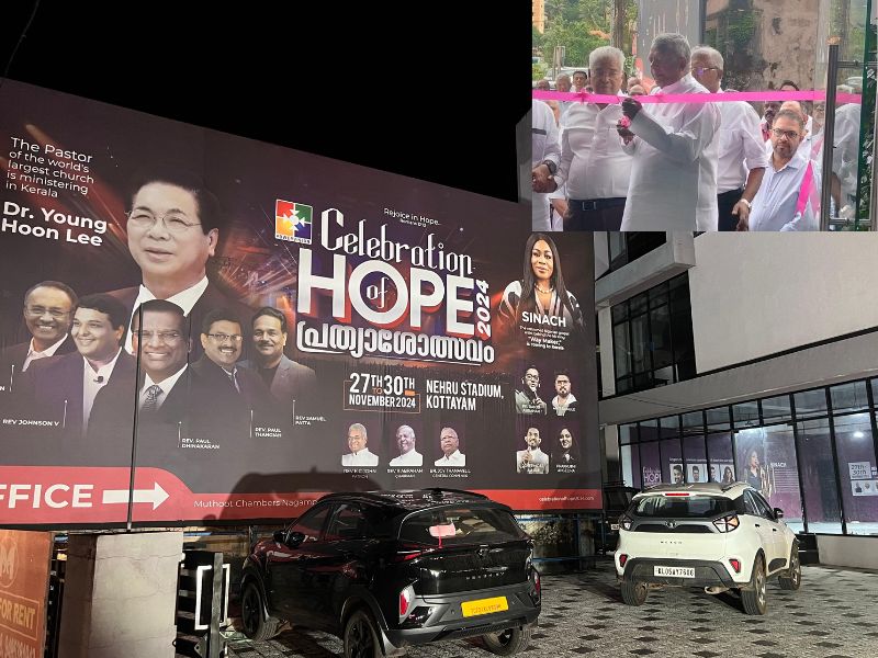 കോട്ടയം : പ്രത്യാശോത്സവം 2024 ന്റെ ഓഫീസ് പ്രവർത്തനമാരംഭിച്ചു. നാഗമ്പടം മുത്തൂറ്റ് ടവറിന്റെ ഗ്രൗണ്ട് ഫ്ലോർ ആണ് ഓഫീസ്. ഒക്ടോബർ 07 തിങ്കളാഴ്ച വൈകുന്നേരം 04 മണിക്ക് രക്ഷാധികാരി റവ. ഡോ. കെ സി ജോണിന്റെ അദ്ധ്യക്ഷതയിൽ പാസ്റ്റർ രാജു പൂവാക്കാലയുടെ പ്രാർത്ഥനയോടെ ആരംഭിച്ച ശുശ്രൂഷയിൽ ചെയർമാൻ റവ. ഡോ. ആർ എബ്രഹാം ഓഫീസിന്റെ ഉത്ഘാടനം നിർവ്വഹിച്ചു.