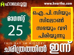 1933 ഓഗസ്റ്റ് 25 : ഐ.പി.സി യും സിലോൺ പെന്തെക്കോസ്ത് സഭയും വഴി പിരിയുന്നു.