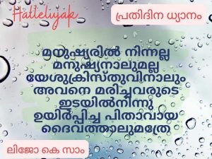 മനുഷ്യരിൽ നിന്നല്ല മനുഷ്യനാലുമല്ല യേശുക്രിസ്തുവിനാലും അവനെ മരിച്ചവരുടെ ഇടയിൽനിന്നു ഉയിർപ്പിച്ച പിതാവായ ദൈവത്താലുമത്രേ -ഗലാത്യർ 1:1