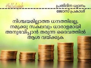 നിശ്ചയമില്ലാത്ത ധനത്തിലല്ല, നമുക്കു സകലവും ധാരാളമായി അനുഭവിപ്പാൻ തരുന്ന ദൈവത്തിൽ ആശ വയ്ക്കുക – 1 തിമൊഥെയൊസ് 6:17