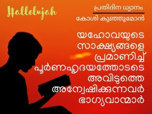 യഹോവയുടെ സാക്ഷ്യങ്ങളെ പ്രമാണിച്ച് പൂർണഹൃദയത്തോടെ അവിടുത്തെ അന്വേഷിക്കുന്നവർ ഭാഗ്യവാന്മാർ -സങ്കീർത്തനങ്ങൾ 119:3