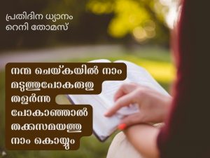“നന്മ ചെയ്കയിൽ നാം മടുത്തുപോകരുതു; തളർന്നുപോകാഞ്ഞാൽ തക്കസമയത്തു നാം കൊയ്യും”. (ഗലാത്യർ 6:9)