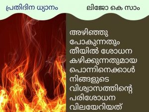 അഴിഞ്ഞു പോകുന്നതും തീയിൽ ശോധന കഴിക്കുന്നതുമായ പൊന്നിനെക്കാൾ നിങ്ങളുടെ വിശ്വാസത്തിന്റെ പരിശോധന വിലയേറിയത് -1പത്രൊസ് 1:7