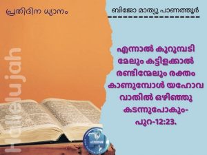 കലിയടങ്ങാതെ അലറിവരുന്ന പലതും നമ്മുടെ ഭവനത്തെ തൊടാതിരിക്കണമെങ്കിൽ കുഞ്ഞാടിന്റെ രക്തം എന്ന മുദ്ര നമുക്കാവശ്യമാണ്. സംഹാരകനെ വഴിമാറ്റി വിടുന്ന യേശുവിന്റെ രക്തം നമ്മെ മറയ്ക്കട്ടെ. ആമേൻ.