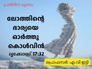 ദൈവ വചനത്തിലെ ആദ്യത്തെ മുന്നറിയിപ്പു ആദമിനോടും, ഹവ്വയോടുമായിരുന്നെങ്കിൽ, രണ്ടാമത്തെ മുന്നറിയിപ്പു ലോത്തിനോടും കുടുംബത്തോടുമായിരുന്നു! അതേക്കുറിച്ചാണു ധ്യാന ഭാഗത്തു നാം കാണുന്നത്.  ‘പുറകോട്ടു നോക്കി നശിക്കരുത്; മുന്നോട്ടോടി