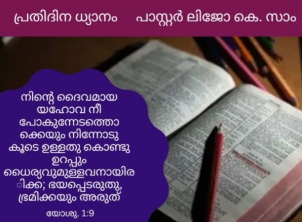 ഇത് യോശുവയോടു ദൈവം ആവർത്തിച്ച് പറയുവാനുള്ള കാരണം അദ്ദേഹത്തിലൂടെ വലിയ പദ്ധതികൾ യഹോവയായ ദൈവത്തിനു ചെയ്തെടുക്കുവാനുണ്ടായിരുന്നത് കൊണ്ടാണ്. പ്രിയ ദൈവപൈതലേ, താങ്കളിലൂടെ കർത്താവിന് വലിയ പദ്ധതികൾ ചെയ്തെടുക്കുവാനുണ്ട്.