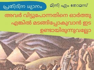 വിശ്വാസത്താൽ ജീവിതത്തിൽ മുൻപോട്ട് കുതിച്ച വിശ്വാസ നായകന്മാരെ എബ്രായർ 11-ആം അധ്യായത്തിൽ പരാമർശിക്കുന്നുണ്ട്. ജീവിതത്തിൽ തെറ്റ് എന്ന് തോന്നിയ പലതിനെയും ദൈവിക കല്പനകൾക്ക് എതിരെന്ന് തോന്നിയ പലതിനെയും, വാഗ്ദത്ത നിവൃത്തിക്ക് തടസ്സമായ പലതിനെയും വിട്ടെറിഞ്ഞ് ദൈവിക വാഗ്ദത്തങ്ങളെ വിശ്വാസത്താൽ മാത്രം കണ്ട് മുൻപോട്ട് പോയവരാണ് എല്ലാവരും. വിട്ടുപോന്നതിനെ ഓർക്കാതെ, ഓട്ടക്കളത്തിൽ മുൻപോട്ട് ഓടി വിജയികളായവർ. ഇന്നലെകളിൽ ‘വേണ്ട’ എന്ന് പറഞ്ഞ് പിന്തള്ളിയ സങ്കടങ്ങൾ, ദുരനുഭവങ്ങൾ,ബന്ധങ്ങളിലേക്ക് തിരികെ പോകുവാൻ തോന്നുന്നുവെങ്കിൽ ദൈവിക വാഗ്ദത്തങ്ങളെ വിശ്വാസത്താൽ ദർശിക്കാൻ കഴിയാത്തത്കൊണ്ടാണ്.