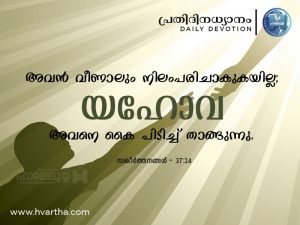അവൻ വീണാലും നിലംപരിചാകുകയില്ല; യഹോവ അവനെ കൈ പിടിച്ച് താങ്ങുന്നു.