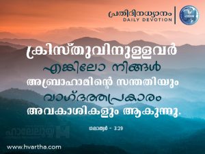 ക്രിസ്തുവിനുള്ളവർ എങ്കിലോ നിങ്ങൾ അബ്രാഹാമിൻ്റെ സന്തതിയും വാഗ്ദത്തപ്രകാരം അവകാശികളും ആകുന്നു.