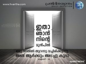 ഇതാ ഞാൻ നിൻ്റെ മുൻപിൽ ഒരു വാതിൽ തുറന്നു വെച്ചിരിക്കുന്നു അത് ആർക്കും അടച്ചു കൂടാ. വെളിപ്പാട് 3: 8