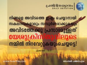 നിങ്ങളെ അവിടത്തെ ഇഷ്ടം ചെയ്യാനായി സകലനന്മകളാലും സമ്പൂർണരാക്കുകയും അവിടത്തേക്കു പ്രസാദമുള്ളത് യേശുക്രിസ്തുവിലൂടെ നമ്മിൽ നിറവേറ്റുകയുംചെയ്യട്ടെ!