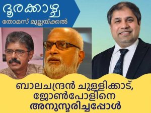 മലയാള സാഹിത്യരംഗത്ത് അവഗണിക്കാനാവാത്ത സ്ഥാനമാണ് ബാലചന്ദ്രൻ ചുള്ളിക്കാടിന്റേത്. തികച്ചും വ്യത്യസ്തമായ അഭിപ്രായപ്രകടനങ്ങളിലൂടെ വേറിട്ട ചിന്തകൾക്ക് പലപ്പോഴും അദ്ദേഹം വഴി മരുന്നിട്ടിട്ടുണ്ട്. ഈ അടുത്ത കാലത്ത് ജീവിതത്തോട് വിട പറഞ്ഞ സുപ്രസിദ്ധ തിരക്കഥാകൃത്ത് ജോൺപോളിൻ്റെ അനുസ്മരണ സമ്മേളനത്തിൽ കൊച്ചിയിൽ വച്ച് ആദ്ദേഹം പറഞ്ഞ ചില വാക്കുകൾ ഏതൊരു ക്രിസ്ത്യാനിയെയും ആവേശം കൊള്ളിക്കുന്നതാണ്; ഏതൊരു വ്യക്തിയെയും ചിന്തിപ്പിക്കുന്നതുമാണ്.