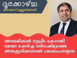 Roe V. Wade എന്ന പേരിൽ അറിയപ്പെടുന്ന ഗർഭച്ഛിദ്രത്തെ അനുകൂലിക്കുന്ന നിയമം ഏതാണ്ട് പൊളിച്ചെഴുതും എന്ന് നേരത്തെയുണ്ടായിരുന്ന ഊഹാപോഹങ്ങൾക്ക് ഏതാണ്ട് ഇപ്പോൾ ഉറപ്പ് വന്നിരിക്കുകയാണ്. പുതിയ നിയമം അനുസരിച്ച് അമേരിക്കയിലെ ഓരോ സംസ്ഥാനങ്ങൾക്കും അവരുടെതായ നിലയിൽ നിയമ നിർമ്മാണം നടത്തുവാനുള്ള അധികാരമാണ് നൽകുവാൻ പോകുന്നത്. അത്തരം നിയമങ്ങൾ നടപ്പിലാക്കുന്നത് കാലതാമസമുണ്ടാക്കുന്ന നടപടികളാണ്. നിയമങ്ങൾ പ്രാബല്യത്തിൽ വരുന്നത് വരെയും ഗർഭഛിദ്രം സ്വന്തം തീരുമാനപ്രകാരം നടത്തുവാനുള്ള അവകാശമാണ് നഷ്ടമാകുവാൻ പോകുന്നത്. അബോർഷൻ മരുന്നുകൾക്ക് ഇപ്പോൾ തന്നെ വലിയ ഡിമാന്റാണ് പലയിടത്തും. അബോര്ഷന് ക്ലിനിക്കുകളിൽ വലിയ തിരക്കാണ് അടുത്ത ദിവസങ്ങളിൽ ഉണ്ടാകുവാൻ പോകുന്നത്. വാഷിംഗ്ടൺ ഡി സിയിൽ പ്രത്യേക നിയമ പരിരക്ഷയുള്ളതുകൊണ്ട് അവിടെ ഗർഭഛിദ്രം നടത്തുന്നതിന് തടസ്സമില്ല എന്നാണ് റിപ്പോർട്ടുകൾ പറയുന്നത്.