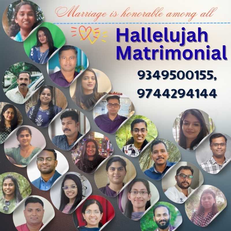 നിങ്ങളുടെ മക്കൾക്ക് യോജിച്ച പങ്കാളിയെ കണ്ടെത്തുവാൻ ഹാലേലൂയ പോലെ സുരക്ഷിതവും മികച്ചതും ആയ മറ്റൊരു മാർഗ്ഗമില്ല. ഇന്ന് തന്നെ പ്രൊഫൈലും ഫോട്ടോയും വാട്സ്ആപ്പ് ചെയ്യുക. കൂടുതൽ വിവരങ്ങൾക്കായി വിളിക്കുക / വാട്സ്ആപ് ചെയ്യുക +91 9349500155, 9744294144