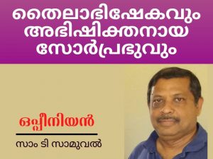 പുതിയ നിയമ സഭകളിൽ പ്രത്യേക ശുശ്രൂഷക്കായി തെരഞ്ഞെടുക്കപ്പെടുന്നവരെ കൈവെച്ചു വേർതിരിക്കുക എന്നതാണ് അപ്പോസ്തലന്മാരുടെ കാലം മുതൽ അംഗീകരിച്ചു പോരുന്ന രീതി. അല്ലാതെ തലമേൽ എണ്ണ പകർന്നു ശുശ്രൂഷക്കായി നിയോഗിക്കുകയല്ല. ദൈവം നിയോഗിച്ച ശുശ്രൂഷകവൃന്ദത്തെ സഭ അംഗീകരിക്കുന്ന പ്രക്രീയയാണ് കൈവെപ്പ് ശുശ്രൂഷ. സഭയുടെ ഭൗതിക കാര്യങ്ങൾ നോക്കുവാൻ തെരെഞ്ഞെടുക്കപ്പെട്ടവരെയും ആത്മീകശുശ്രൂഷക്കായി അദ്ധ്യക്ഷ പദവിയിൽ നീയമിക്കുന്നവരെയും മിഷൻ പ്രവർത്തനത്തിന് പോകുന്നവരെയും കൈവെച്ചു പ്രാർത്ഥിക്കുന്ന പതിവ് സഭകളിൽ നിലവിലുണ്ട്. എന്നാൽ ഇവിടെയെങ്ങും അവരുടെമേൽ എണ്ണ ഒഴിച്ചതായോ തൈലം പകർന്നതായോ നാം കാണുന്നില്ല. അതുകൊണ്ട് രോഗികളെ എണ്ണ പൂശട്ടെ. ശുശ്രൂഷകന്മാരുടെമേൽ കൈവെച്ചു പ്രാർത്ഥിക്കട്ടെ. പഴയ നിയമ ആചാരങ്ങളും ചടങ്ങുകളും സഭകളിൽ നുഴയിച്ചു കൊണ്ടുവരരുതേ.