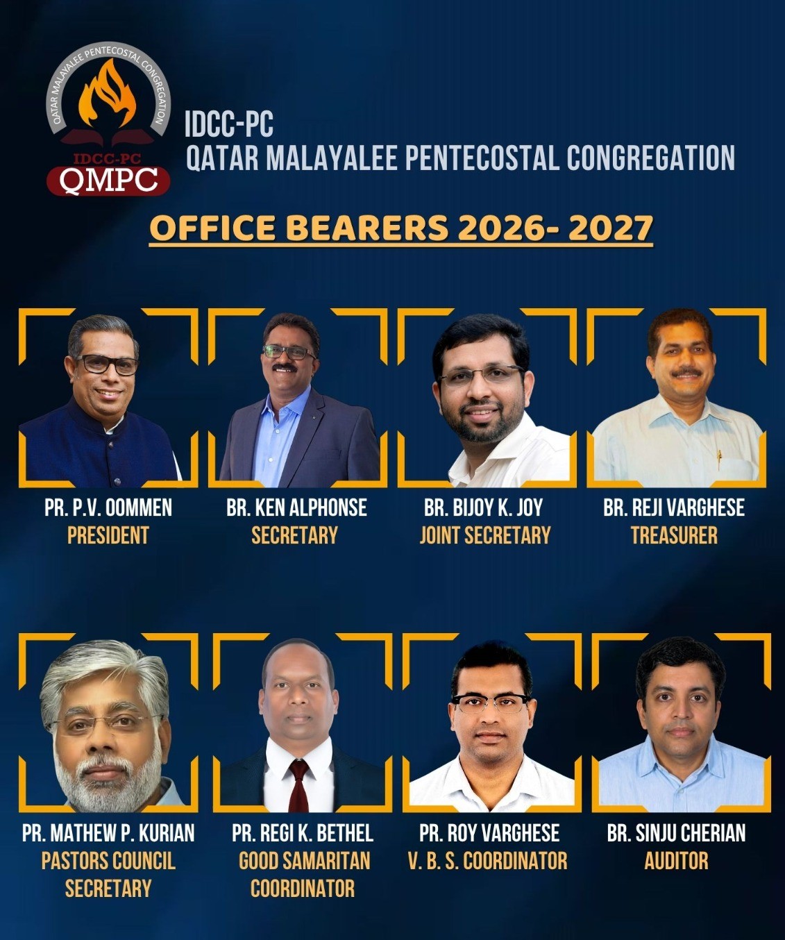 പ്രസിഡൻറ്:പാസ്റ്റർ പി.വി. ഉമ്മൻ (ദോഹ ഐപിസി),