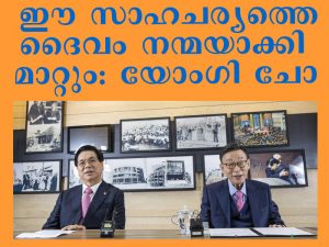 സൗത്ത് കൊറിയയിലെ ഏറ്റവും പ്രസിദ്ധരായ രണ്ടുക്രിസ്തീയ നേതാക്കന്മാരാണ് യോയിഡോ ഫുള്ഗോസ്പല് സഭയുടെ സ്ഥാപകനും ഇപ്പോള് പാസ്റ്റര് എമിരറ്റസും ആയ പാസ്റ്റര് ഡേവിഡ് യോംഗി ചോയും സഭയുടെ ഇപ്പോഴത്തെ സീനിയര് ശുശ്രൂഷകന് ആയ പാസ്റ്റര് ലീ യങ് ഹൂനും. ലോകത്തെ മുഴുവന് ആശങ്കയിലാക്കിയിരിക്കുന്ന കോവിഡ് മഹാമാരിയുടെ പശ്ചാത്തലത്തില് അവര് ഇരുവരും ചേര്ന്ന് കൊറിയ ടൈംസ് പത്രത്തിന് അനുവദിച്ച അഭിമുഖ സംഭാഷണം ലോകമെങ്ങും ലക്ഷങ്ങള് ഇതിനകം ഷെയര് ചെയ്തു കഴിഞ്ഞു. .